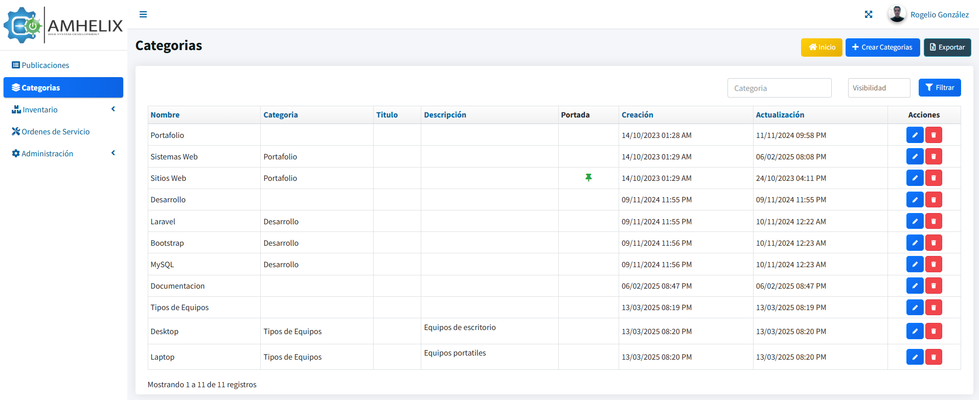 Además, cuenta con los botones de acción habituales, como crear, editar y eliminar registros, así como otras funciones específicas según el módulo en uso, garantizando una experiencia de gestión flexible y eficiente.