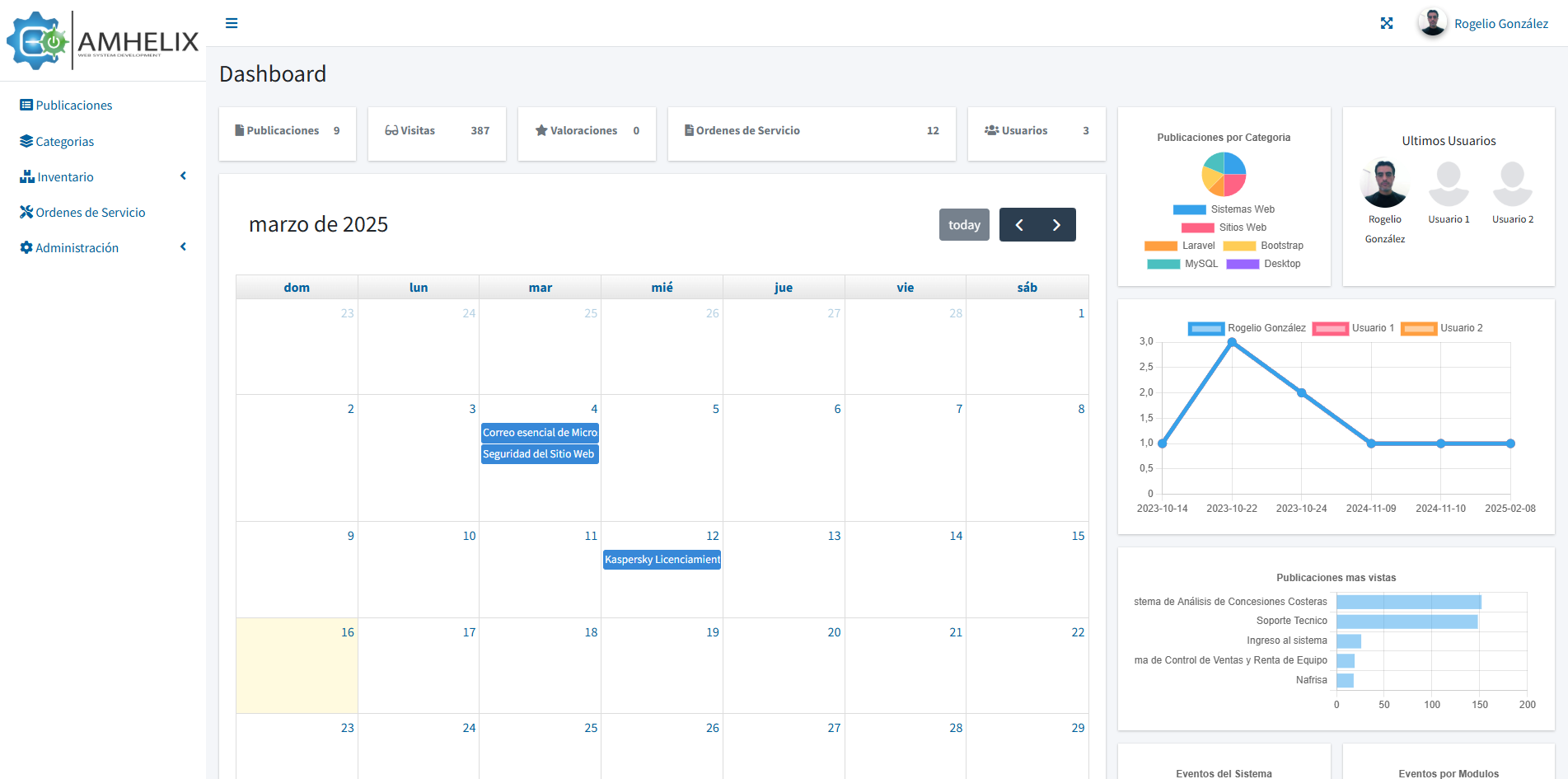 Además, integra la administración de publicaciones que se reflejan directamente en el sitio web principal, asegurando un registro detallado de todas las actividades. También ofrece un historial de eventos y un sistema de permisos personalizados para usuarios, garantizando un acceso seguro y estructurado a la información.